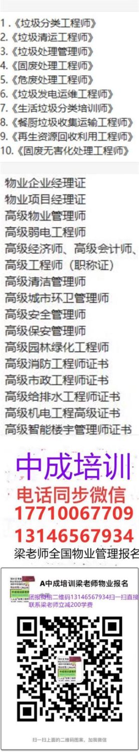 证书报名咨询梁老师道路保洁工程师、清洁项目经理、全国物业服务评估师、客服管家、工民建工程师、建筑工程师、电子信息工程师农艺师、园艺师、